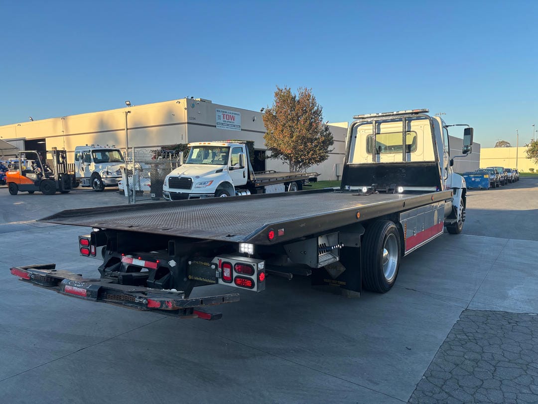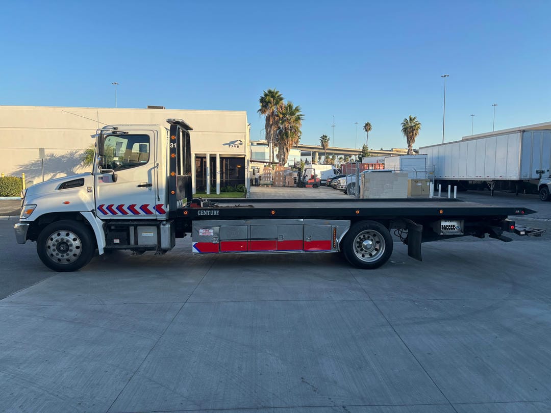 USED Century 21.5' Series 12 LCG steel bed solid bed side, frame mounted pylon, LED light bar, LED marker and work lights, 2 78" aluminum tool boxes with extensions, dual controls,