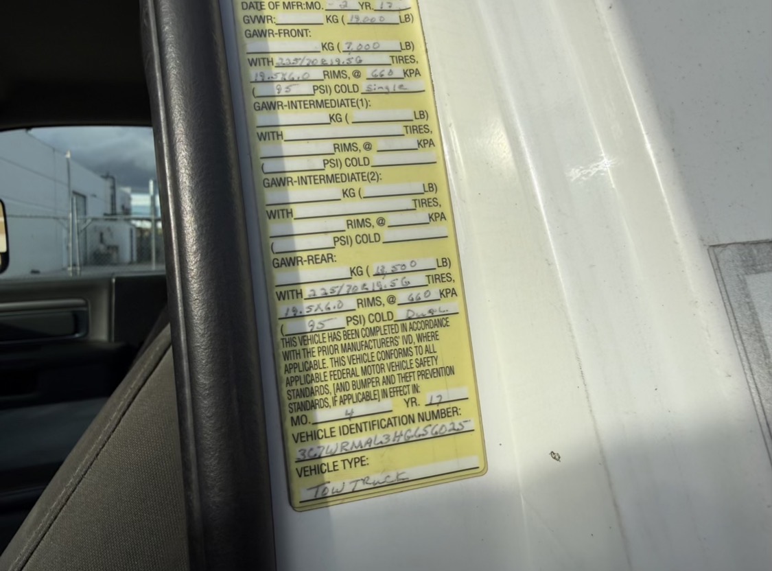 USED 2017 RAM 5500 Regular Cab, Cummins 320HP B6.7L Diesel Engine, Aisin 6 Speed Automatic Transmission, Power windows, Power Door locks, Power mirrors, Spring suspension, Aluminum wheels W/ 225/70R19.5 tires.