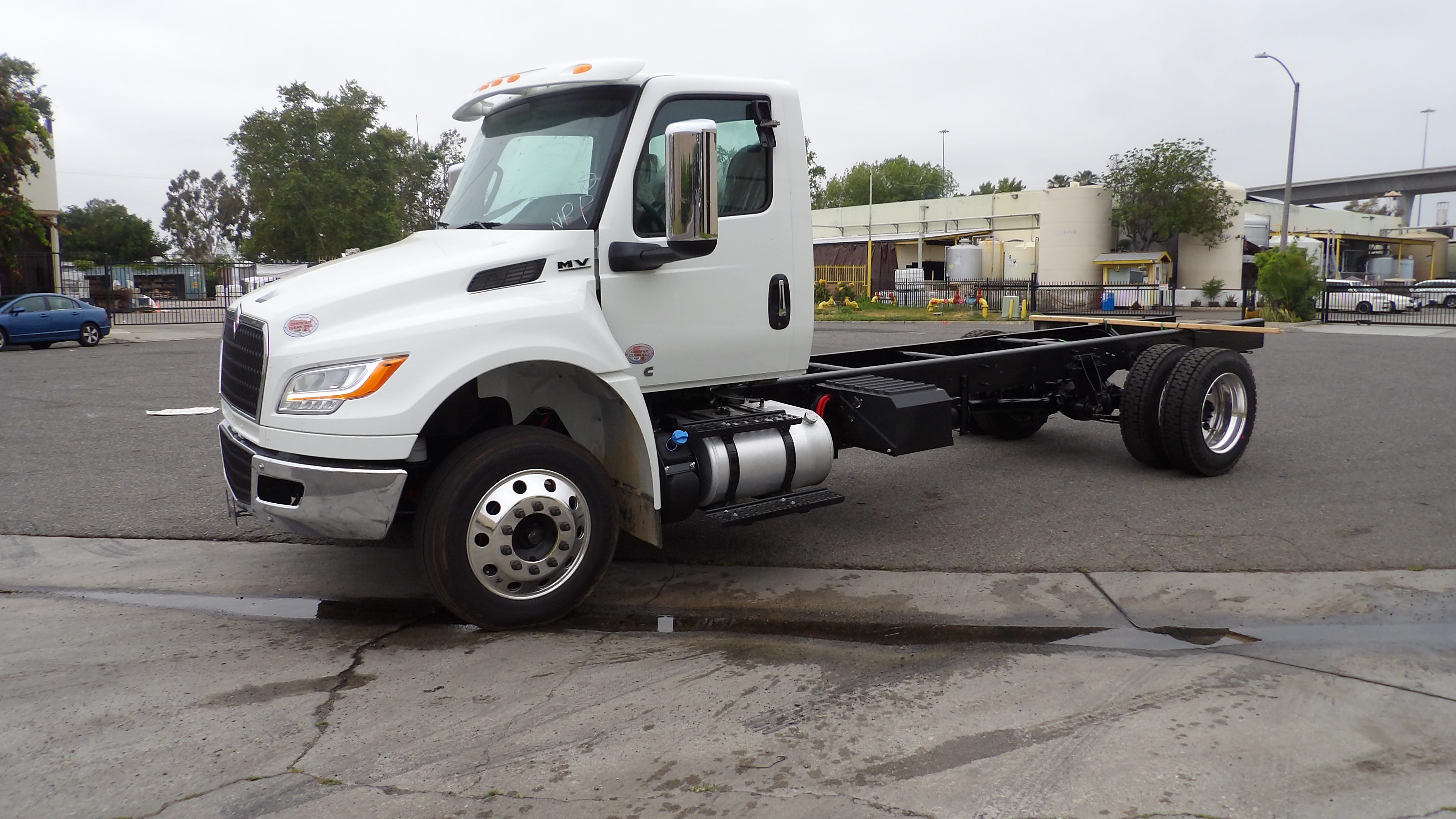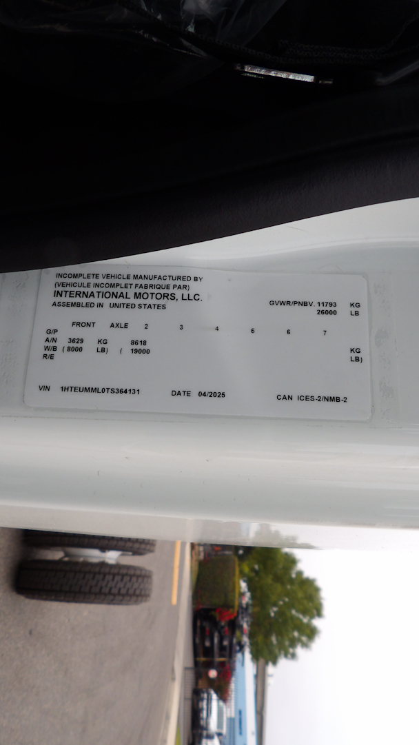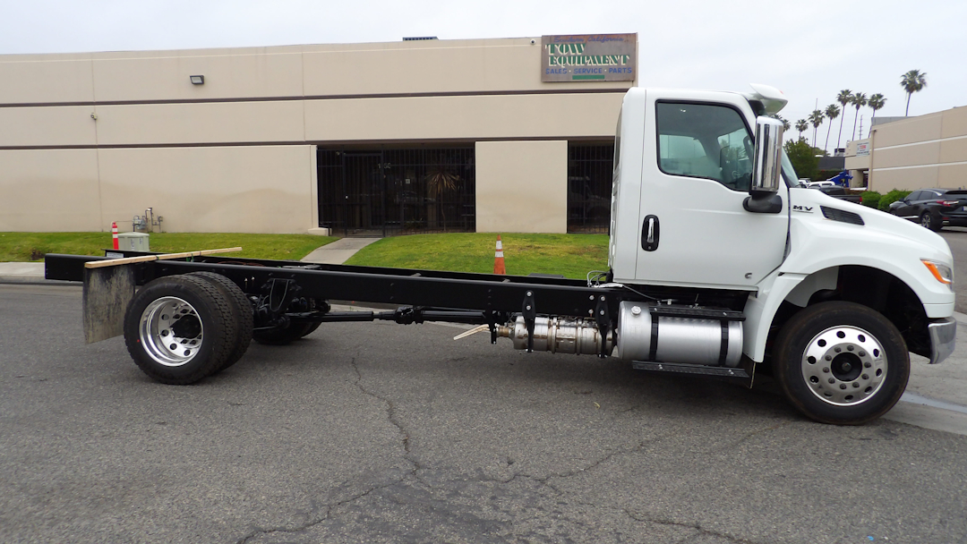 NEW 2026 International MV regular cab white, 26000lb GVWR, California Compliant, 260 HP 6.7L Cummins B6.7, Allison 2200-RDS automatic transmission, power windows door locks and mirrors, exhaust brakes, air brake, air ride, 22.5 aluminum wheels with 255/70R22.5 Tires,