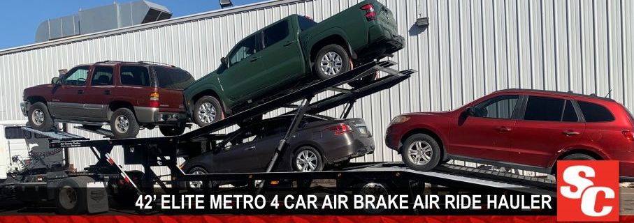 This Sun Country Trailers 42' Metro can handle a mixed load of small cars & high profile passenger vehicles. Perfect choice for tight metropolitan inner city deliveries. The 42' Metro 4 Car Hauler is designed to be towed by a day cab tractor with a 46" to 48" hitch height. Minimum 84" cab to king pin clearance. Truck requires high amperage charge line with coiled cord to supply battery voltage to the trailer.