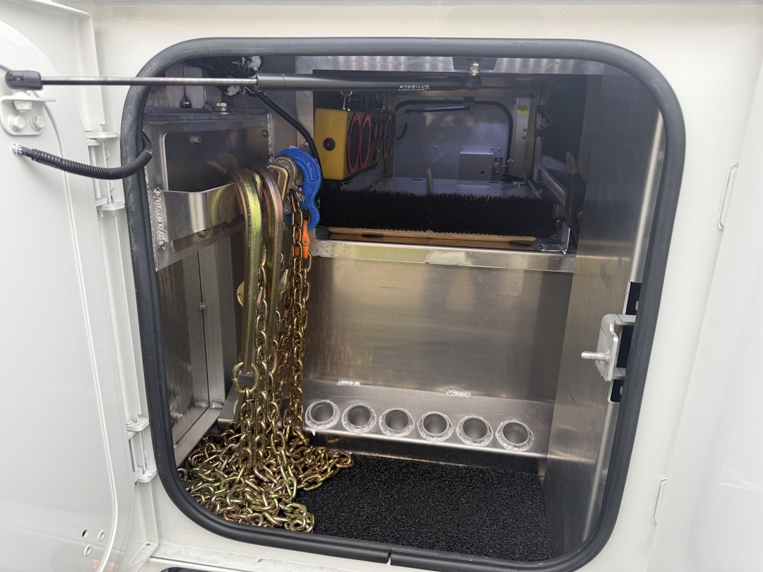 NEW Chevron 1016, 16 Ton Wrecker, Aluminum Modular body with THREE compartments Per side, Manual controls on both driver and passenger side, Lanyard Controls for Underlift and Boom on passenger side, Chevron 4000LB and 6000LB L arms with pivoting receivers, Vulcan 5000LB and 6000LB Strapless Wheel Retainers, Dual 15000LB Planetary Winches, Air free spool, 4 Sets of Forks and Fork holders, Safety chains in tail board, LED Body lighting, Low Profile Crossbar, Hydraulic rear Jacks with Flipper feet, Tailboard D rings, Air and Electrical hookups, LED Tool compartment lighting, Wireless remote.