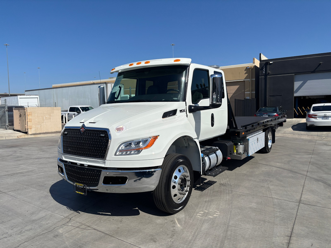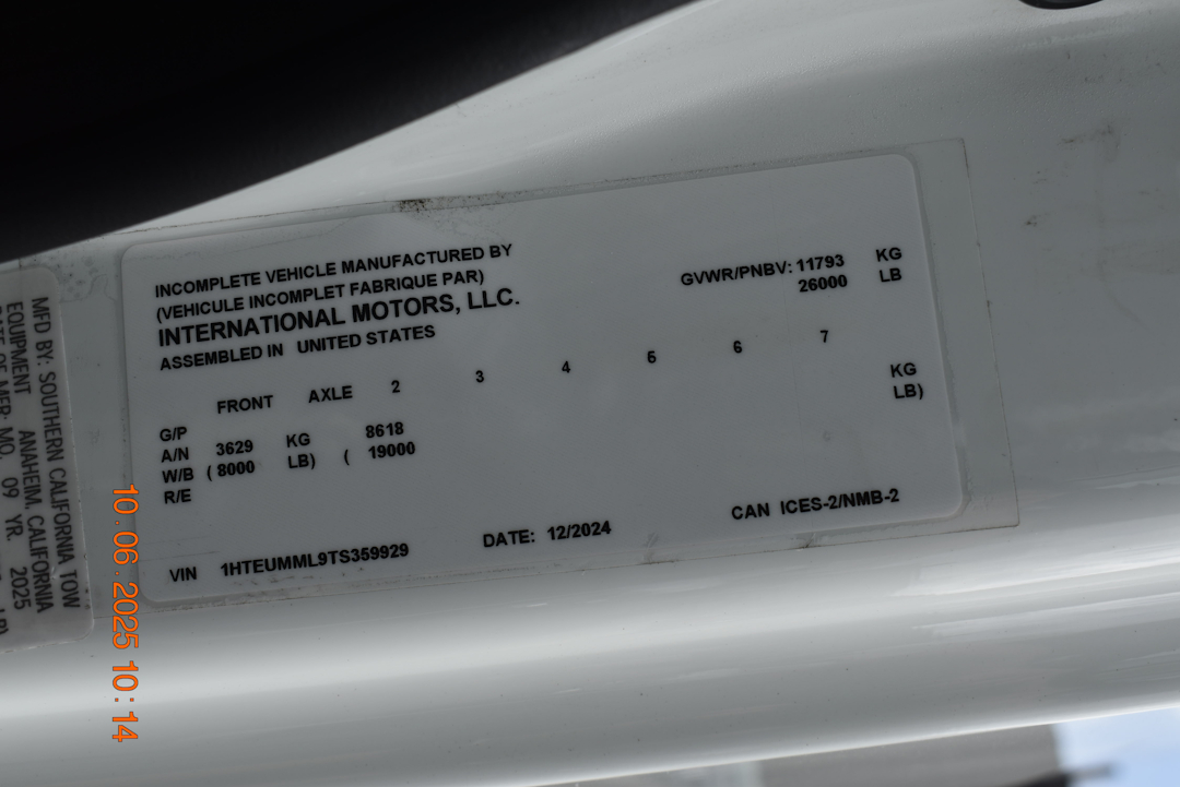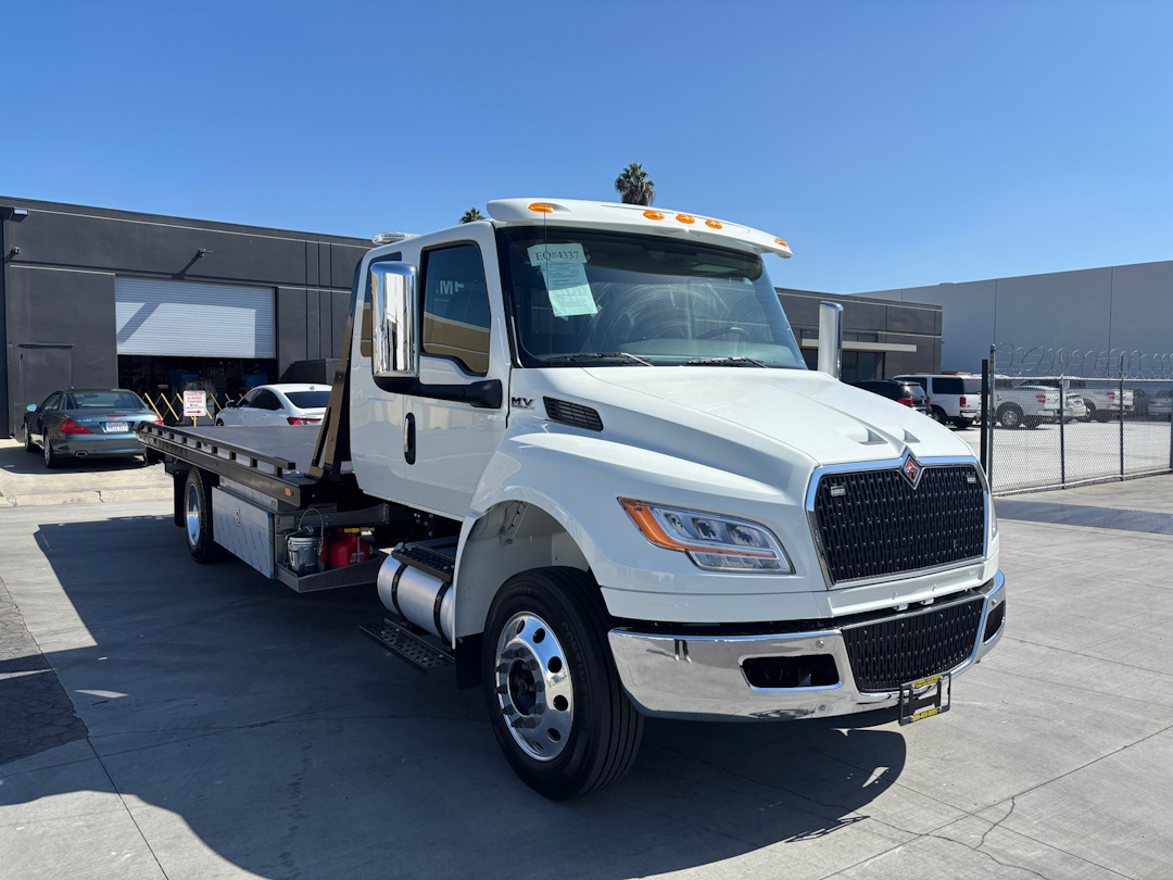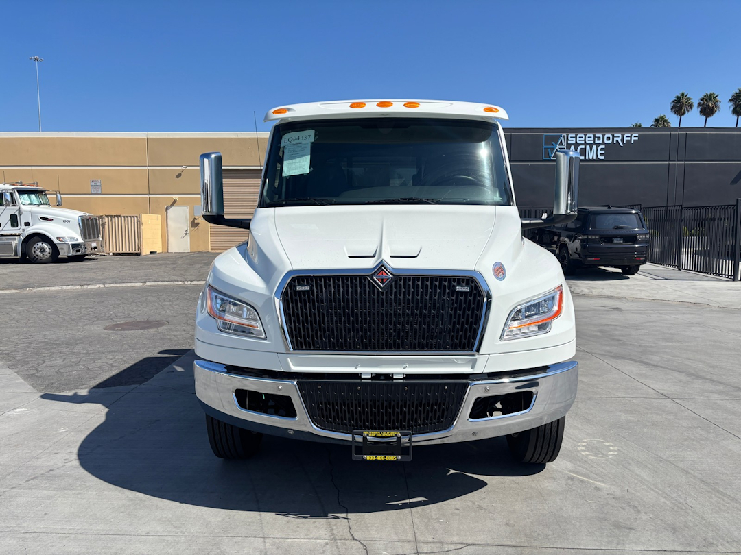 New 2026 International MV607 extended cab white, 26000lb GVWR, 260HP Cummins B6.7 diesel engine, Allison 2200 RDS automatic 6 speed transmission, air brakes, air ride, power windows, power door locks, power mirrors, 22.5" aluminum wheels with 255/70R22.5 tires
