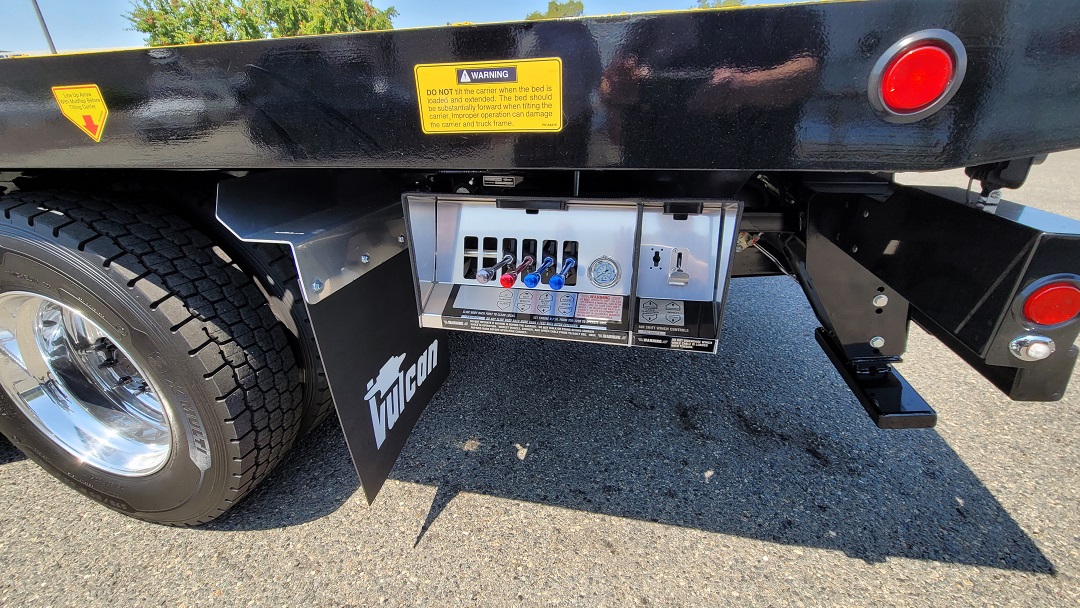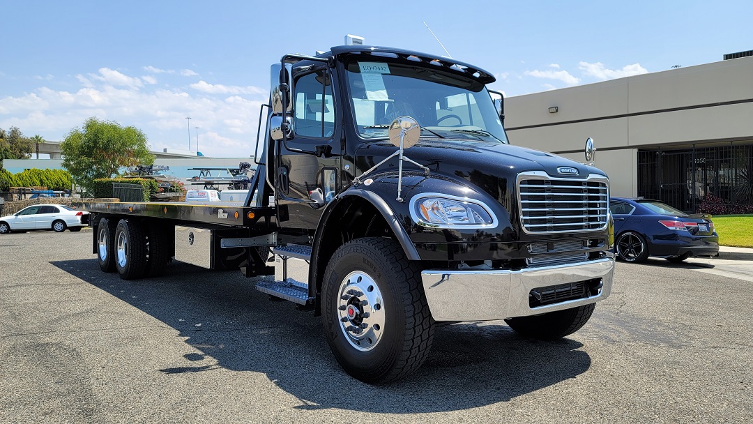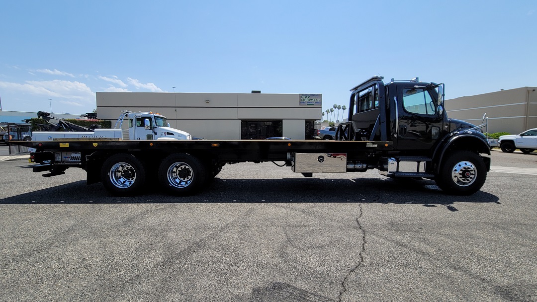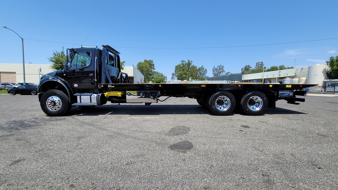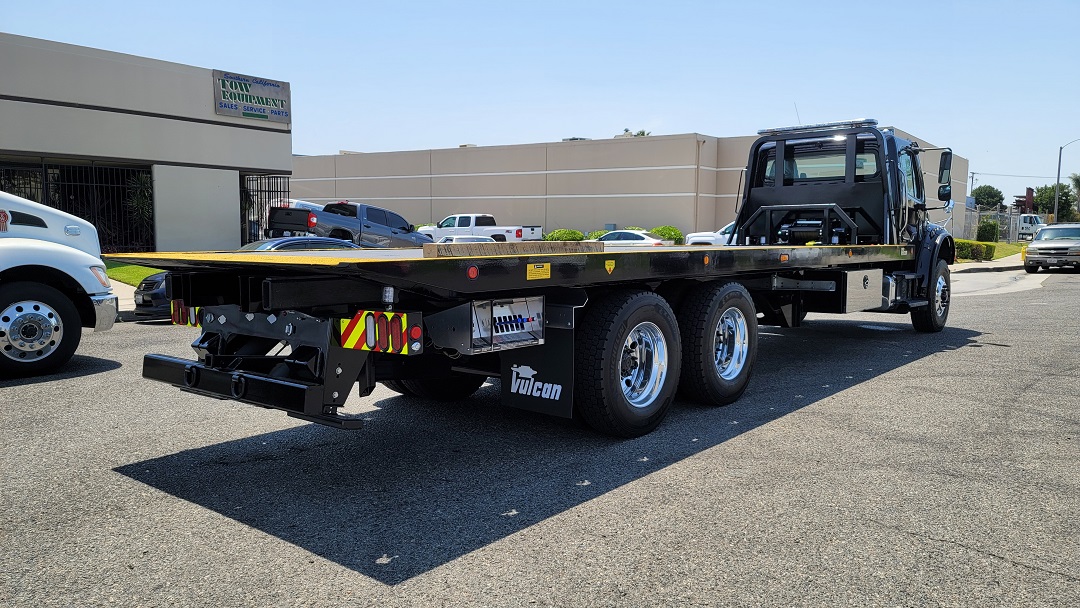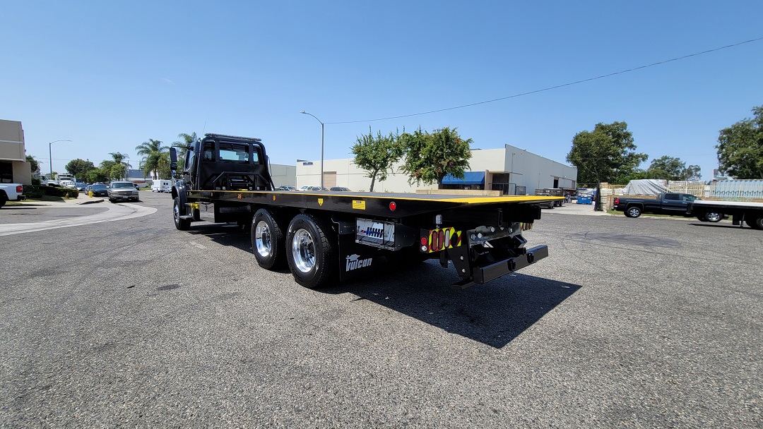 CHASSIS: New 2022 Freightliner M2 106 standard cab black, 360HP Cummins L9 with Allison 3000 RDS automatic transmission, dual 50 gal fuel tanks, Power windows, locks and mirrors, cruise control, AC, aluminum wheels. For complete detail on chassis please see chassis specs. EQUIPMENT: New Vulcan Series 30 28' industrial steel bed 102" wide, 20,000lb Warn winch. Air remote control. two 48" tool boxes, drivers side retractable ladder, LED lights, dual controls with air free spool. Bed S/N ST30L2E212020