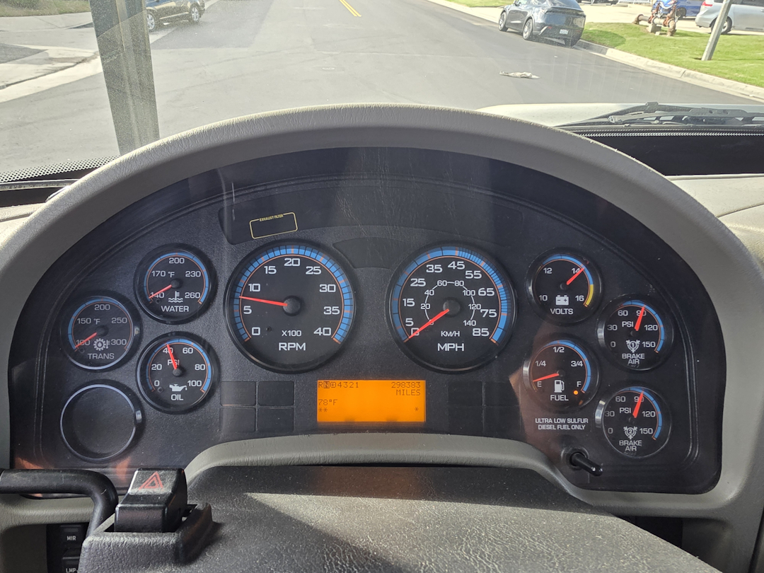 Used 2011 International 4400 SBA white, 298372 miles, 315 HP MaxxForce GDT315 diesel engine, Allision automatic transmission, 22.5 Tire Size, Aluminum Wheels, air brakes, air ride, 12000lb push axle