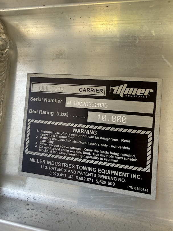 NEW 22' Vulcan Carrier-Aluminum Bed, 8000lb Winch W// 50x3/8 Cable, "L" Arm Under Lift, 3,000 lbs Wheel Lift Rating, Steel Pylon, LED Light Bar, Millenium Marker lights, LED Ecco Work Lights, Left and Right 6 Spool Control Station, 2 x 65"Aluminum Tool Boxes.