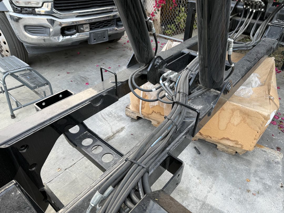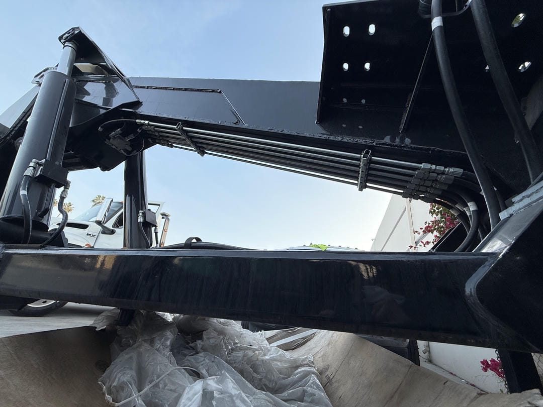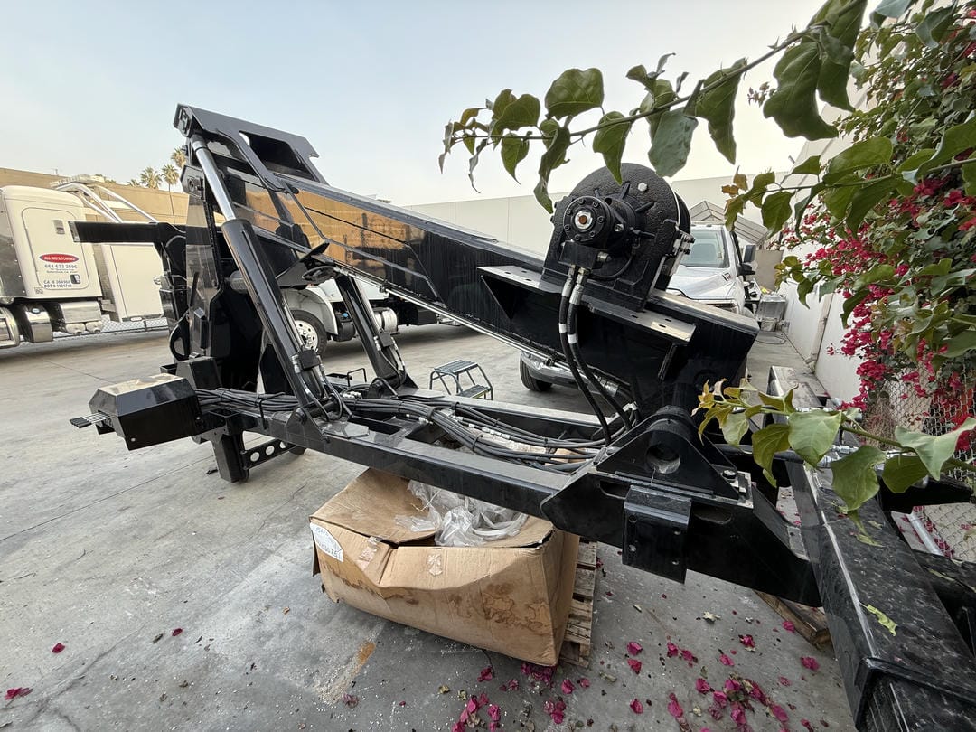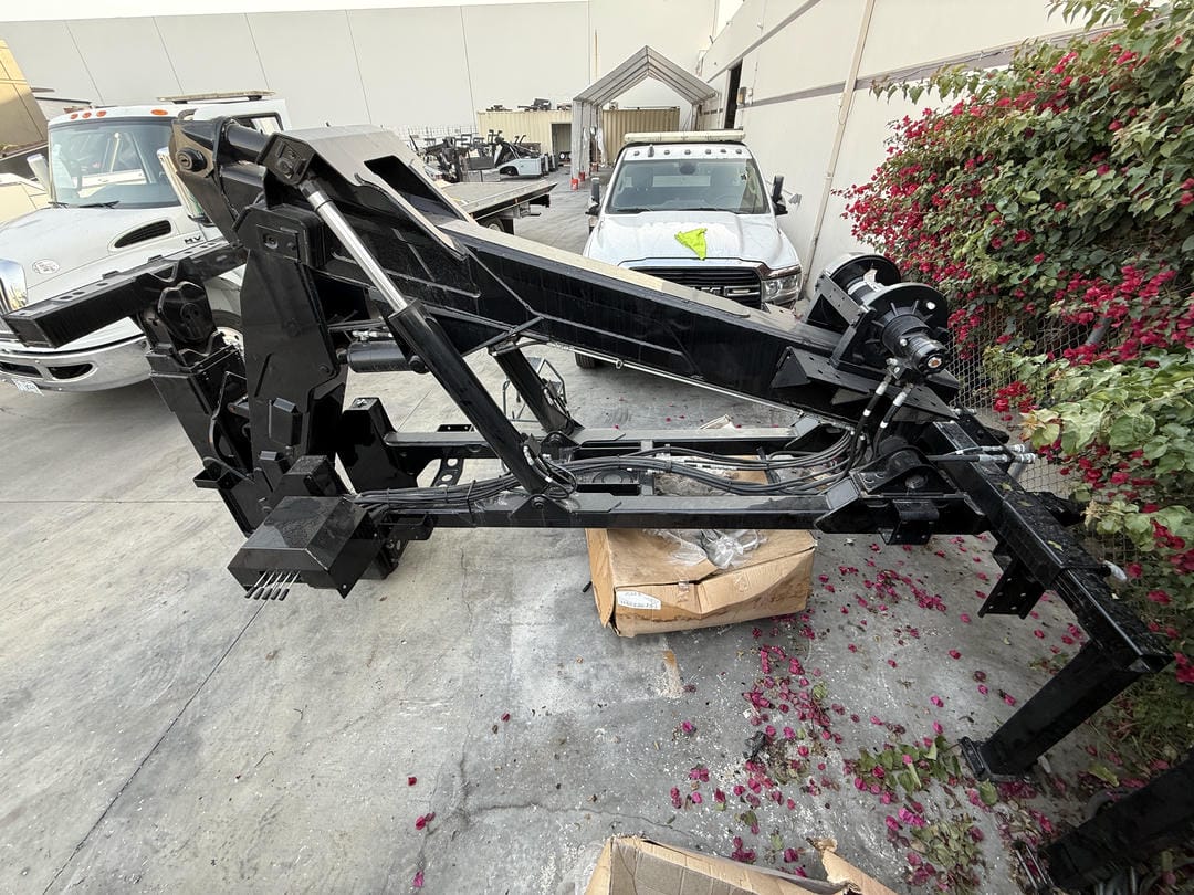 New Holmes DTU (Detachable Towing Unit), has been re-designed to decrease rear overhang, increase front axle weight, and offer better towability. With repositioned lift cylinders, the DTU also provides superior under lift height and further improved center of gravity and weight transfer. Lift capacity retracted 35,000 lbs. lift capacity extended 16,000 lbs. reach past tailboard fully extended 113 inches reach past tailboard fully retracted 51 inches power tilt arc 20° shipping weight 6,200 lbs. chassis recommendations: minimum wheelbase 250”, minimum clearance from front of DTU to center of trunnion 84" standard features · low profile fabricated Ccross bar · front stands · fork storage holders · air & electrical lines · safety chains · passenger side control · hook end caps · 5 sets of frame forks · 20,000lb planetary winch 9/16” x 175’ IWRC cable (winch options include: air tensioners, air free spool, 360° sheave heads) Serial # TBD