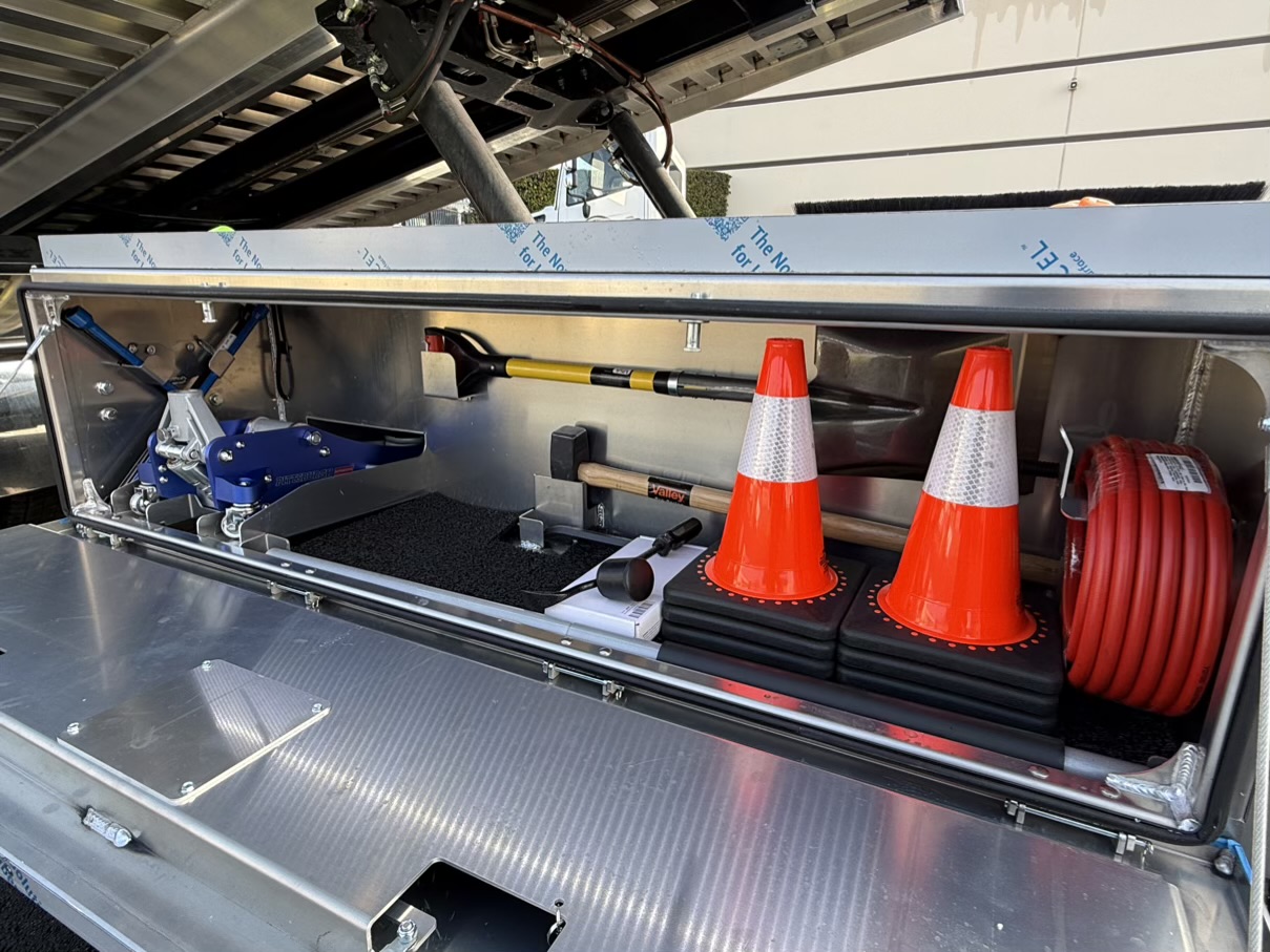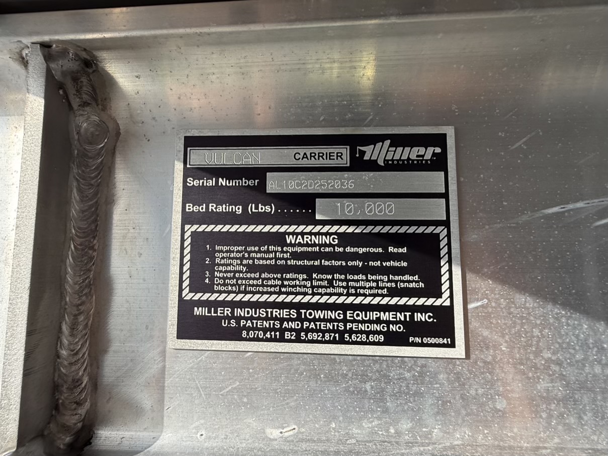 NEW 22' Vulcan Carrier-Aluminum Bed, 8000lb Winch W// 50x3/8 Cable, "L" Arm Under Lift, 3,000 lbs Wheel Lift Rating, Steel Pylon, LED Light Bar, Millenium Marker lights, LED Ecco Work Lights, Left and Right 6 Spool Control Station, 2 x 65"Aluminum Tool Boxes.