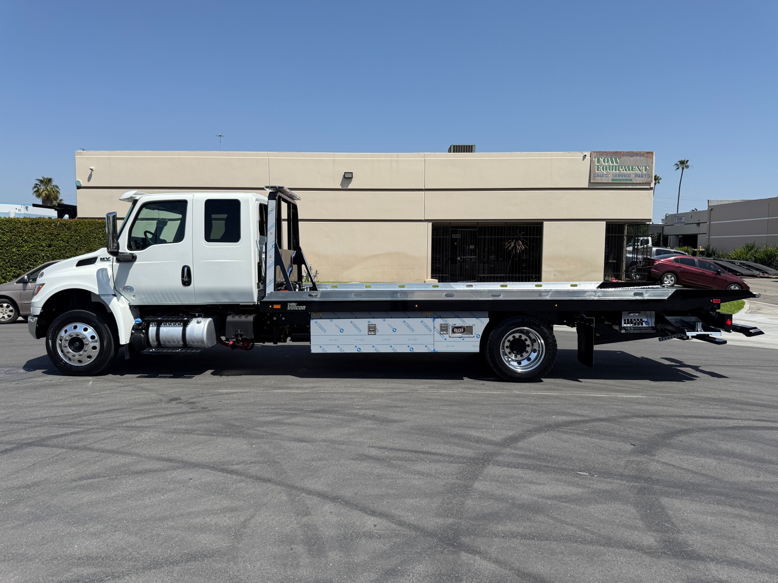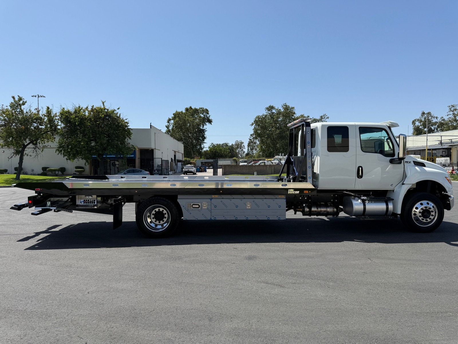 NEW 21.5' Vulcan S-12 LCG Dual Angle SST steel bed, 12,000lb Loadin Rate, 12,000Lb Worm Manual Release Winch 3/4"X50' Cable, 1,000.00LB Tow Rating "L"Arm Wheel w/ 4,000lb Wheel Lift Rating , Dual Control,Removable Aluminum Blade Rails , Steel Cab Pylon, 11 chain lock package, chain lock baskets, Pee Wee LED marker lights, LED light bar,4-LED work Lights,Extra Lights on Pylon and Bed, Front And Rear Air and Jump Box, 2-65" Aluminum Tool Box w/ 24" Fender Extension Tool Box, 4-Front Strobe light ,2-Rear Strobe lights.
