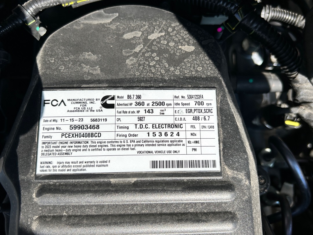New 2024 RAM 4500 regular cab, white 60CA, 16,500LB GVW, 360HP Cummins B6.7 360 diesel engine, Aisin automatic transmission, power windows door locks and mirrors, AC, 19.5 Aluminum wheels w/225/70R/19.5 tires.